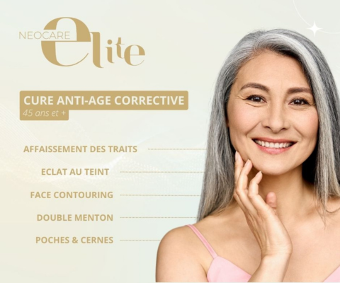 La cure NeoCare Elite visage permet de lutter contre l’apparition des rides, l’affaissement des traits, et corriger les signes de l’âge. Redessine l’ensemble du visage en sollicitant les muscles en profondeur.